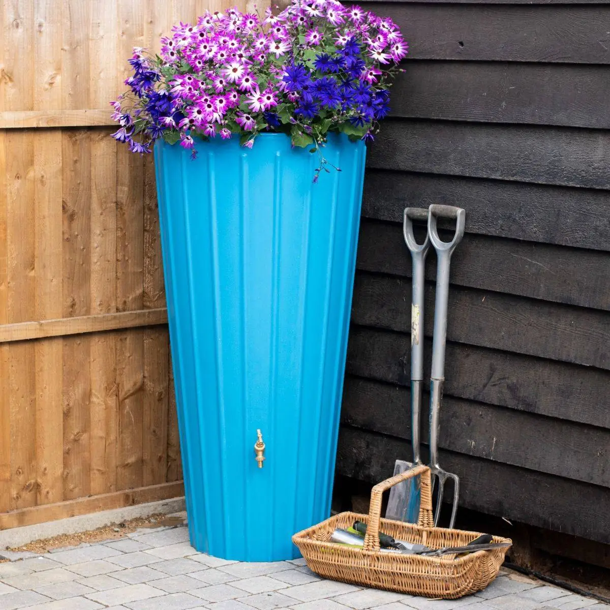 - Stylish, dual-purpose water butt and planter