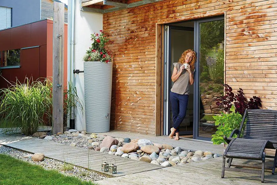 This 350L Natura 2 in 1 Water Tank with Planter – Beach Beige is not just a water butt. It also includes a built-in planter for house plants and flowers. The stylish design makes these conical-shaped, pastel colour water tanks a class above the rest and they have a high storage volume and a small footprint.