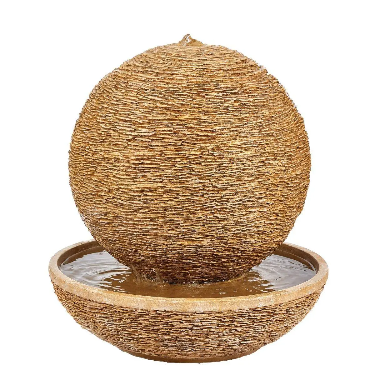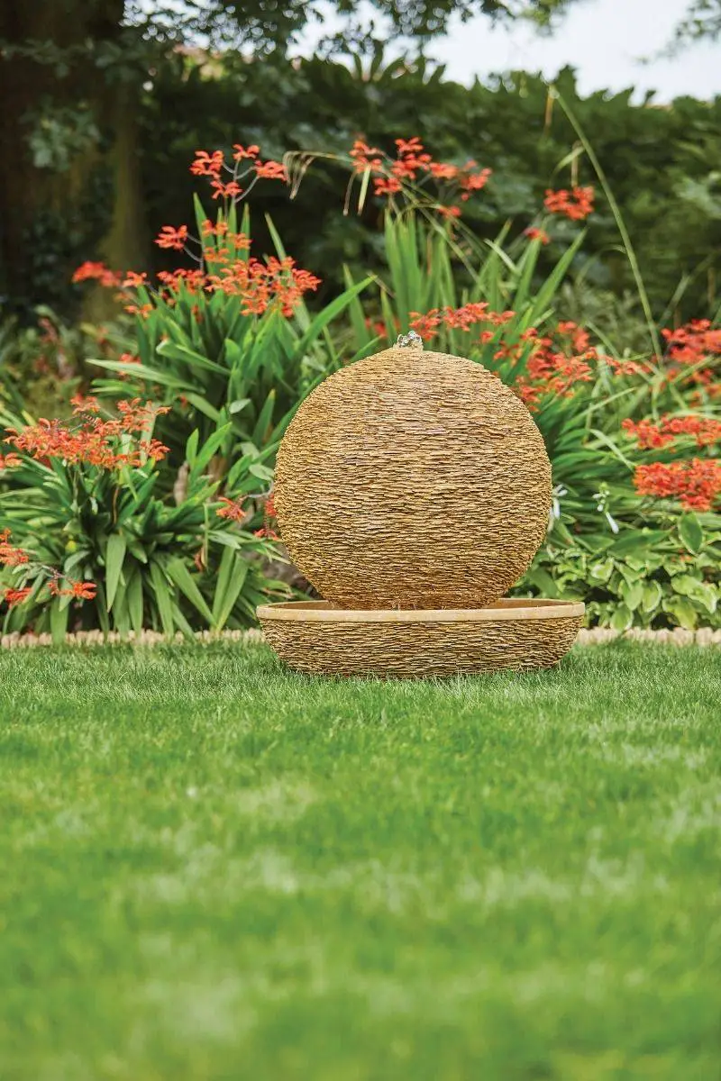 The Cotswold Sun water feature has been uniquely designed to look and feel like it has been crafted out of weathered stone. The simple design allows the water to cascade down the textured sphere into the bowl below. This stunning piece of stone effect art would be a fantastic addition to any garden.