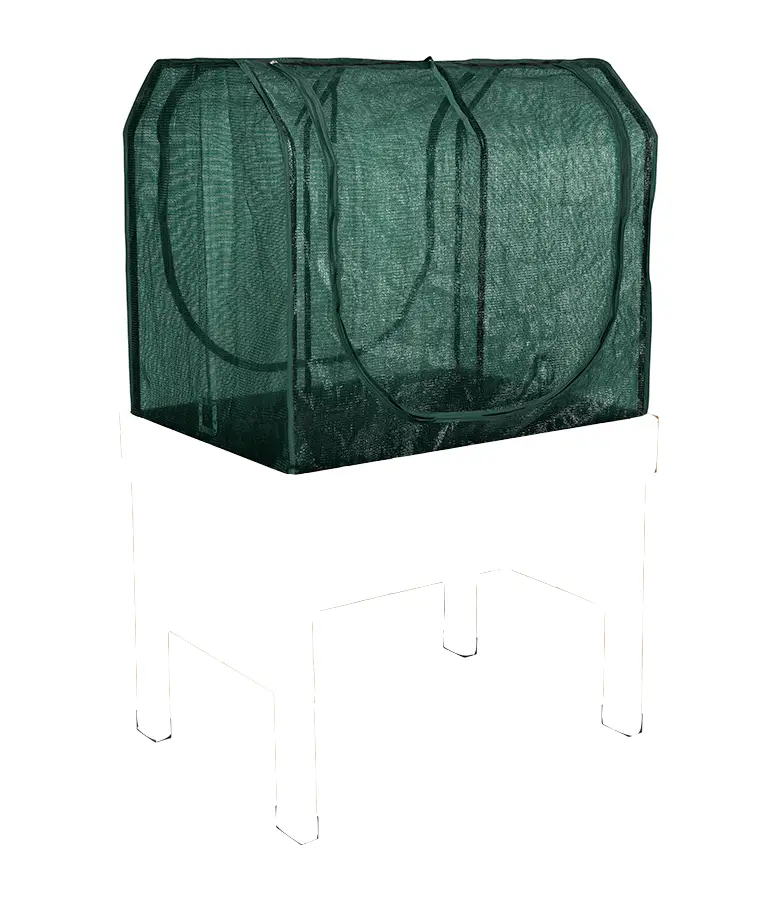 The cover is perfectly designed to help your crops as it reduces the tempature of the soil. It’s also UV-stabalized with the material – polyethylene material and is fade resistant to the sun. Be warned the easy fill opening system when combined with VegTrug water reservior (sold separately).