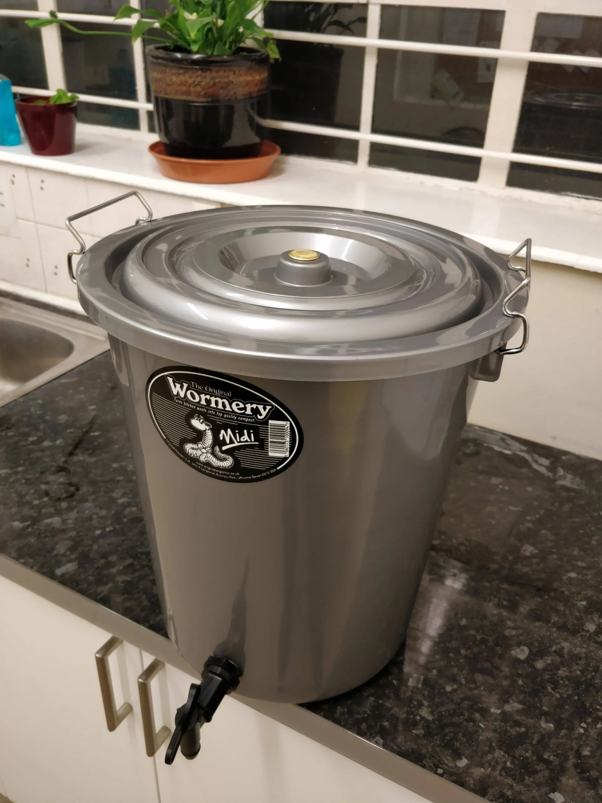 Ideal for flats, and for 1-2 person use Ideal for Children Great for balconies Completely sealed Brass Aeration Vent for airflow Keep it indoors or out! Tiger Worms included! Make organic vermicompost.