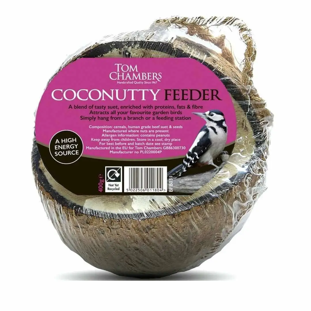 Watch birds flock to the irresistible Tom Chambers Coconutty feeder, ideal for feathered friends.